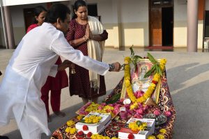 ಕಾಲೇಜಿನ ಪ್ರಾಂಶುಪಾಲರಾದ ಹೇಮಂತ್ ಕೃಷ್ಣರವರು ವಸಂತ ಪಂಚಮಿಯು ವಿದ್ಯೆಯ ಮಹತ್ವವನ್ನು ಸ್ಮರಿಸುವ ಹಬ್ಬವಾಗಿದ್ದು, ಇಂದು ಸರಸ್ವತಿ ವಂದನೆಯ ಮೂಲಕ ವಿದ್ಯಾಭ್ಯಾಸದಲ್ಲಿ ಪ್ರಗತಿ ಸಾಧಿಸುವ ಸಂಕಲ್ಪ ಮಾಡೋಣ ಎಂದು ವಿದ್ಯಾರ್ಥಿಗಳಿಗೆ ಕರೆ ಗೊಟ್ಟರು.